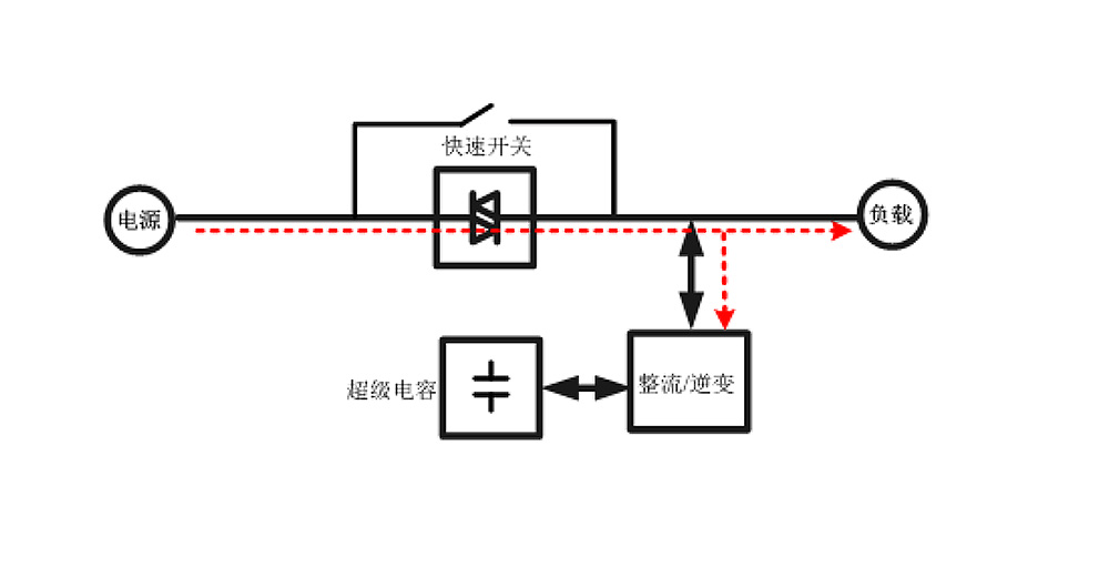 The system voltage is restored to within the limit range: the fast switch is closed, the inverter is turned off, the load is powered by the system again, and the equipment rectifier circuit is used to charge and store energy for the capacitor.