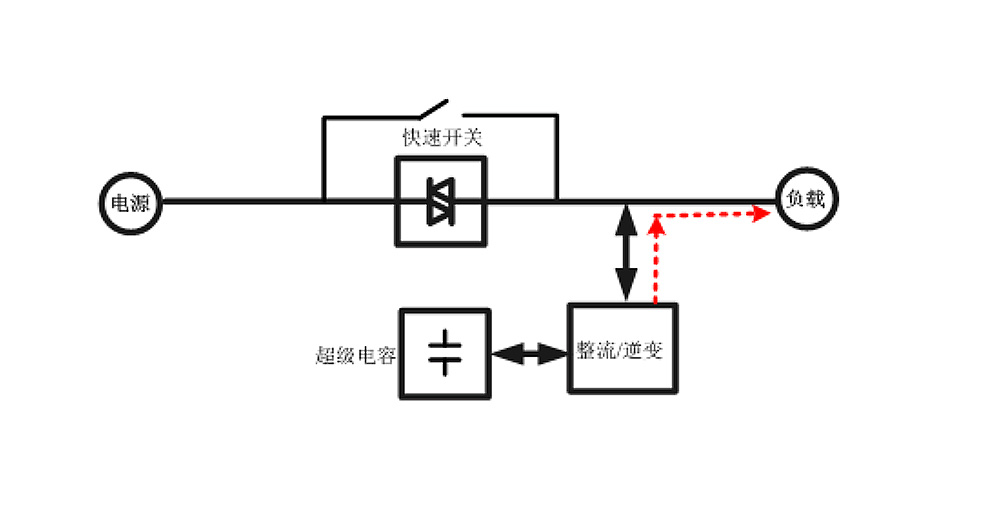 ? 當系統(tǒng)正常運行時,快速開關(guān)處于合閘狀態(tài),負載由電網(wǎng)供電;