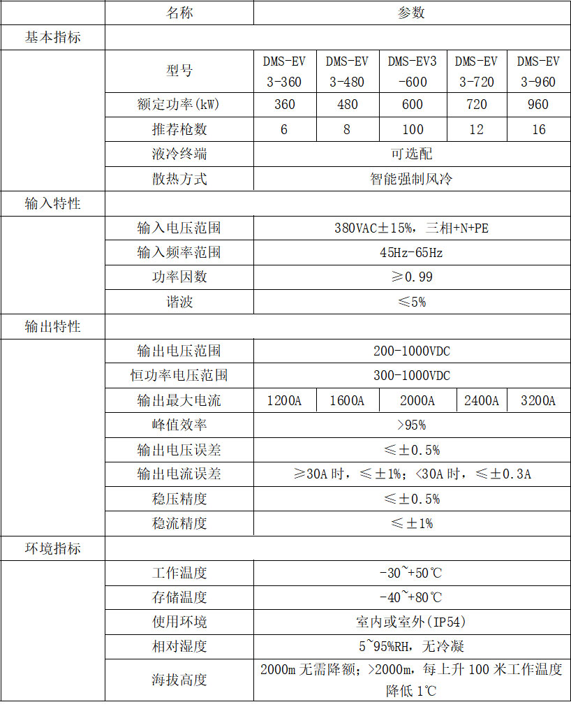 DMS-EV3系列分體式直流充電系統(tǒng)功率覆蓋360kW-960kW,具備柔性充電,根據(jù)充電過(guò)程中電動(dòng)汽車(chē)的實(shí)際需求功率,自適應(yīng)動(dòng)態(tài)分配最有充電功率,可適配所有充電車(chē)型系統(tǒng)可根據(jù)應(yīng)用場(chǎng)景自由搭配風(fēng)冷快充與液冷超充,打造靈活高效的充電體驗(yàn)。